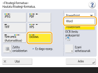1 | Hautatu<OOXML> hautatu <Word> goitibeherako zerrendatik.![]() ![]() OCRrako erabili beharreko hizkuntza aldatzeko, sakatu <Ezarri xehetasunak> <Aldatu> hautatu hizkuntza bat edo hizkuntza-talde bat sakatu <Ados>. |