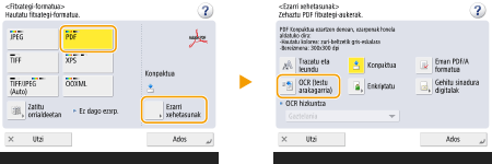 1 | Hautatu <PDF> sakatu <Ezarri xehetasunak> <OCR (testu arakagarria)>.![]() |