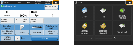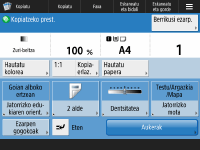Sakatu , <Etxea> pantailan eta oinarrizko eginbideen pantailan pantaila pertsonalizatzeko eta botoiak berrantolatzeko edo lasterbiderako tekla sortzeko. Ukipen-pantaila pertsonalizatzea![]() Aldatu egin ditzakezu pantailari dagozkion ezarpenak; adibidez, makina PIZTU ostean berehala zein pantaila agertzen den, eta mezurik agertzen den gelditzen den paper eta tonerrari dagokionez. <Bistaratze-ezarpenak> Ezarri egin dezakezu bistaratuko beharreko pantaila eragiketarik gabe denbora-tarte jakin bat igarotzen denean. <Berrabiarazte auto. ondorengo funtzioa> |