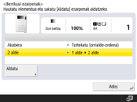 Zerrendako ezarpen bat hautatu eta <Aldatu> sakatzen baduzu, ezarpena alda dezakezu. Ezarpena aldatu ostean, sakatu <Ados>.