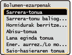 <Ener. aurrez./Lo moduaren tonua> | Makina lo moduan sartzean egiten duen soinua, edo makina desaktibatuta dagoenean egiten duenean <Elikadura nag. has. azkarraren ezarp.> ezartzen baduzu <Bai>-rako. (Egoeren arabera, makina ez da azkar abiatuko eta seinalean ez du soinua egingo.) |