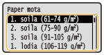 Paper-iturburuan kargatutako papera ez bada paper-motaren ezarpenean zehaztutakoa, ikusi
