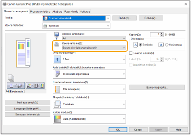 Ezarri inprimatu behar den paper tamainaren berdina den [Output Size] inprimagailuaren kontrolatzailean.