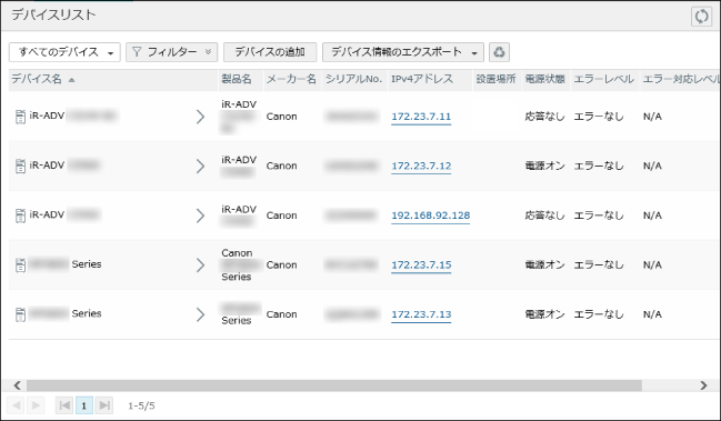 リストに表示されるデバイス情報は、自動更新されません。表示内容を更新したい場合は、[] (表示の更新)をクリックしてください。