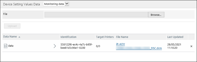 Specify the data to upload on the [Device Setting Values Data] page.
