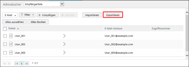 Klicken Sie auf [Exportieren] im Menü [Datenverwaltung] > [Adressbücher] > Seite [Empfängerliste].
