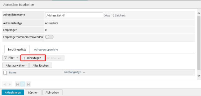 Näheres zum Hinzufügen von Empfängern auf der Seite [Adressliste bearbeiten] finden Sie hier: