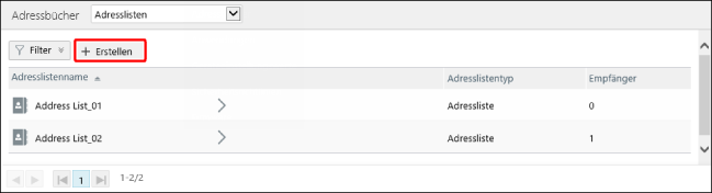 Klicken Sie auf [Erstellen] im Menü [Datenverwaltung] > [Adressbücher] > Seite [Adresslisten].