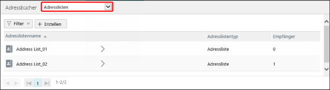 Wählen Sie aus der Dropdown-Liste oben auf der Seite [Adressbücher] die Option [Adresslisten].