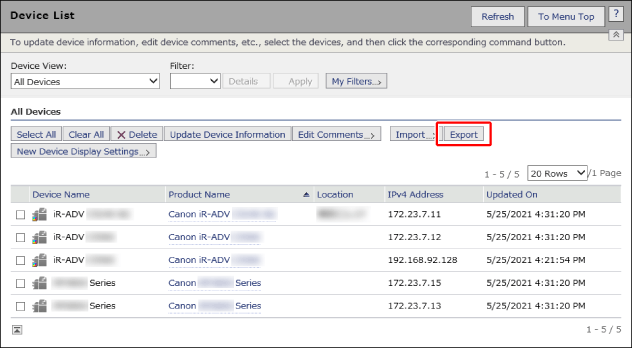 移行先のEnterprise Management Console V4.xに追加するために、Enterprise Management Console V3.xで管理しているデバイスリストをエクスポートします。