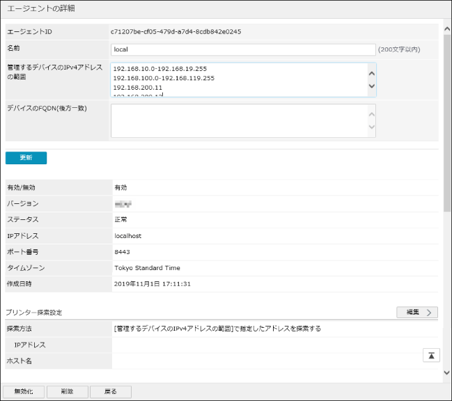 FQDNで指定したプリンターは、[探索方法]の選択状態にかかわらず、編集中のエージェントの管理対象になります。
