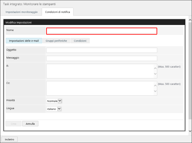 [A]/[Cc] | Inserire l'indirizzo e-mail a cui inviare la notifica. Per impostare più indirizzi, separarli con virgole o interruzioni di riga. |