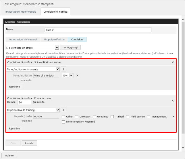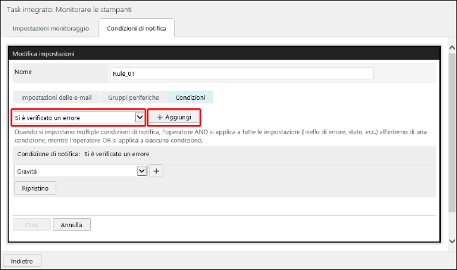 Se vengono impostate più condizioni di notifica, l'e-mail viene inviata quando viene soddisfatta una delle condizioni di notifica. |