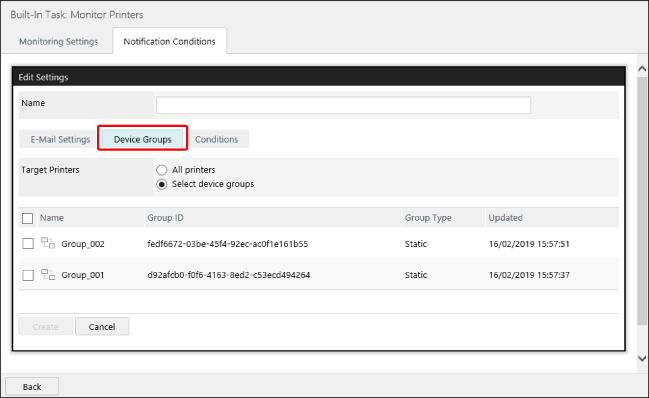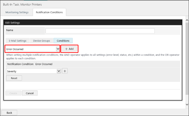 [Error Content] | 选择错误内容。您可以选择多项。 按类别显示从标准打印机 MIB(RFC 3805 定义)中的 PrtAlertCodeTC 收集到的信息。 可以通过选择一个类别的方式来选择包含在该类别中的所有项目。如果无需设置每个项目,可选择一个类别。 |