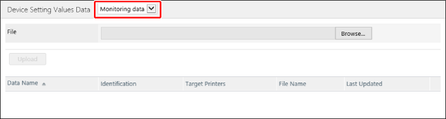 从 [Device Setting Values Data] 页面顶部的下拉列表中选择 [Monitoring data]。