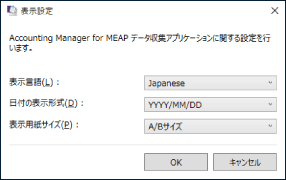 データ収集アプリケーションでの[表示言語]/[日付の表示形式]/[表示用紙サイズ]の設定は、データ収集アプリケーションに対する設定です。AM for MEAPには反映されません。AM for MEAPに反映する場合は、以下を参照してください。 |