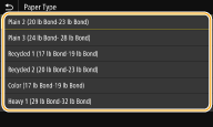 If you always load the same paper in the multi-purpose tray, you can skip the paper setting operations by registering the paper size and type as the default setting. When the default setting is registered, however, the screen shown above is not displayed. To display the screen, select <Specify When Loading Paper> (Registering Default Paper Settings for the Multi-Purpose Tray).