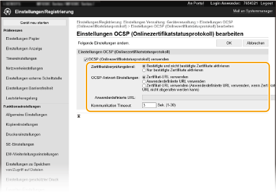 [Einstellungen OCSP (Onlinezertifikatstatusprotokoll)].