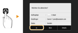 Wenn Sie das Senden eines Dokuments sofort nach der Auswahl von Start abbrechen möchten, wählen Sie auf dem Display <Abbrechen>, oder drücken Sie . Sie können das Senden von Dokumenten auch nach der Überprüfung des Sendestatus abbrechen.