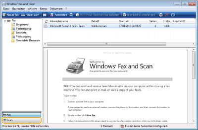 Wenn der Scanvorgang abgeschlossen ist, wird das gescannte Dokument in der Liste der Dateien auf dem Bildschirm [Windows-Fax und -Scan] angezeigt und im Ordner [Gescannte Dokumente] von [Dokumente] gespeichert.