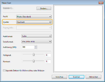 Um das gescannte Abbild mit den festgelegten und angewendeten Einstellungen zu prüfen, klicken Sie auf [Vorschau].