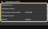 <Utilizzo memoria stampa protetta>Visualizza la quantità di memoria in uso per l'archiviazione dei dati dei documenti protetti.