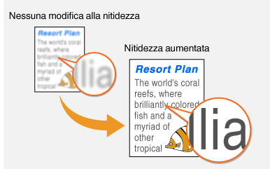 ![]() | È possibile regolare la nitidezza dell'immagine. Aumentare la nitidezza per ottenere righe e testo sfocati più precisi o diminuire la nitidezza per migliorare l'aspetto delle foto di riviste. |