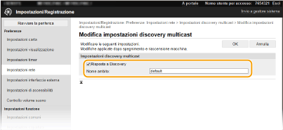 1 | Selezionare [Impostazioni discovery multicast] [Modifica]. |