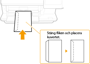 Fyll på kuverten så att sidan med fliken vänds mot vänster sida enligt bilden. |