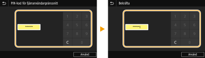 Du kan ange en PIN-kod för åtkomst till fjärranvändargränssnittet. Alla användare har en gemensam PIN-kod.