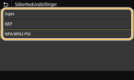 2 | Vælg en krypteringsmetode. ![]() <Auto> Angiver maskinen til automatisk at vælge AES-CCMP eller TKIP, så de svarer til den trådløse routers indstilling. <AES-CCMP> Angiver AES-CCMP som krypteringsmetoden. |