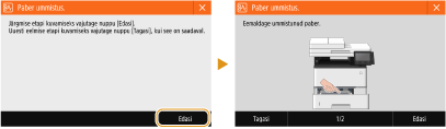 Teatud juhtudel kuvatakse tõrke ilmnemisel juhised, mida tõrke lahendamiseks teha. Järgige probleemi lahendamiseks kuvatavaid juhiseid. Allpool on näitena toodud kuva, mis kuvatakse paberiummistuse korral.