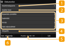 Saate määrata, kas kuval <Olekumonitor> näidatakse IP-aadressi, seadistades funktsiooni <Kuva IP-aadress>.