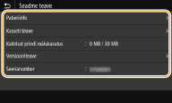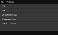 Kuvatakse võrguseaded (nt seadme IP-aadress) ja võrguolek (nt traadita side kohtvõrgu ühenduse seisund).