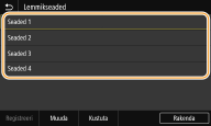 Kui soovite kiiresti laadida samu sätteid kopeerimisel, faksi saatmisel ja skannimisel, saate need sätted salvestada lemmiksätetena. Salvestatud sättekombinatsioonid saate kiirvalikunuppudena lisada kuvale Avamenüü.