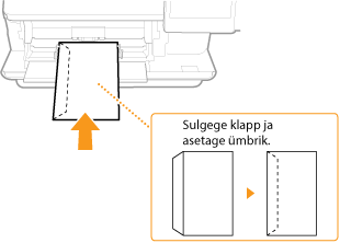 Asetage ümbrikud (Monarch, COM10, DL või ISO-C5) püstpaigutusega (lühike serv seadme poole) ja liimita külg (esikülg) üleval. Ümbrike tagaküljele ei saa printida.