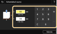 2 | Määrake <X>-külje ja <Y>-külje pikkus. Valige <X> või <Y> ja sisestage numbriklahvide abil vastava külje pikkus. ![]() ![]() Salvestades sageli kasutatavad paberiformaadid nuppude <S1> kuni <S3> alla, saate need laadida ühe puutega. Kohandatud paberiformaadi salvestamine |