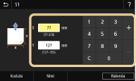 Valige <X> või <Y> ja sisestage numbriklahvide abil vastava külje pikkus.