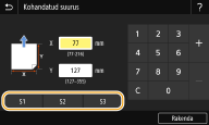 Ülalkirjeldatud toiminguga salvestatud paberiformaate saab laadida, kui paberisahtli või universaalaluse paberiformaadi valikukuval valitakse <Kohandatud>.