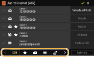 ![]() | Sageli kasutatavad faksi või skannitud dokumendi sihtkohad saate salvestada aadressiraamatusse ja neid sealt vajadusel hõlpsasti valida (Sihtkohtade salvestamine aadressiraamatusse). Sihtkohti saab otsida tähestikulisest järjestusest, aadressiraamatu loenditest või sisestades kolmekohalise numbri (koodvalimisnumbrid). Sihtkohtade kiiremaks määramiseks saate kasutada ka järgmisi võimalusi. |