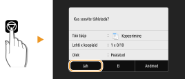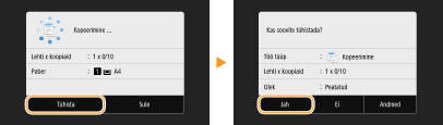 Kui soovite paljundamise tühistada vahetult pärast <Alusta> valimist, valige kuval <Tühista> või vajutage juhtpaneelil