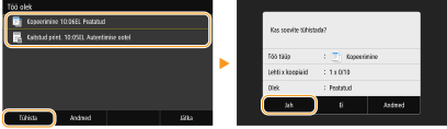 Originaaldokumendid on skannitud ja ootavad printimist. Valige tühistamisele kuuluv paljundatav dokument ja valige <Tühista>