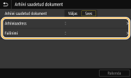 Kui saadetud dokumentide arhiveerimise funktsiooni ei kasutata, valige <Väljas>.