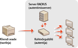Seadme saab ühendada 802.1X-võrku klientseadmena. Tüüpiline 802.1X-võrk koosneb RADIUS-serverist (autentimisserverist), kohtvõrgulülitist (autentija) ja autentimistarkvaraga klientseadmetest (taotlejad). Kui printer püüab ühenduda 802.1X-võrguga, peab printer läbima kasutajate autentimise tõestamaks, et ühenduse looja on volitatud kasutaja. Autentimisteave saadetakse RADIUS-serverisse, mis seda kontrollib ning olenevalt autentimise tulemusest lubab või keelab sideühenduse võrguga. Kui autentimine nurjub, blokeerib kohtvõrgulüliti (või pääsupunkt) juurdepääsu võrku väljastpoolt.