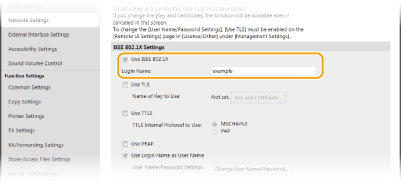 Märkige ruut [Use IEEE 802.1X] ja sisestage tekstiväljale [Login Name] sisselogimisnimi.