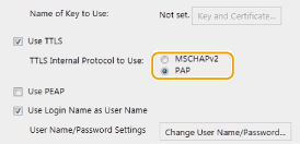1 | Märkige ruut [Use TTLS] või [Use PEAP]. TTLS-protokolli sisemine protokoll Saate valida MSCHAPv2-protokolli või PAP-protokolli |