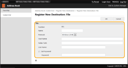Ühiskausta või FTP-serveri aadressi salvestamiseks valige [File].