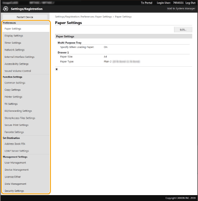 Remote UI (Kaugkasutajaliides) abil saab muuta mitmesuguseid printeri seadeid. Enamiku seadeid saab määrata ka printeris, kuid mõned seaded saab määrata ainult Remote UI (Kaugkasutajaliides) abil. Käesolevas jaotises kirjeldatakse Remote UI (Kaugkasutajaliidese) abil printeri sätete muutmise põhilist käiku.