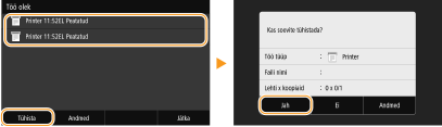 Valige dokument vahekaardil <Kopeer.-/prinditöö olek>