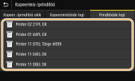 Prindilogide vaatamine1 | Valige vahekaardil <Prinditööde logi> dokument, mille logi soovite vaadata. <OK> kuvatakse siis, kui dokument prinditi välja, ja <Tõrge> kuvatakse siis, kui dokumendi printimine nurjus tühistamise või tõrke tõttu. ![]() Kuvatakse dokumendi üksikasjalik teave. Kuvatav dokumendi- või kasutajanimi ei pruugi kajastada tegelikku dokumendi- või kasutajanime. ![]() Kui teate <Tõrge> korral kuvatakse kolmekohaline number See number tähistab tõrkekoodi. Lisateavet leiate veebijuhendi saidilt teemast „Tõrkeotsing (FAQ)“. |